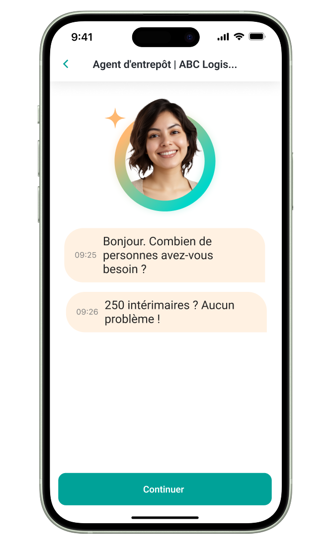Clara se spécialise dans les rôles de première ligne à volume élevé, tels que les opérateurs d'entrepôt, les livreurs, les vendeurs, les agents d'entretien, et plus encore. Elle est conçue pour évoluer rapidement et de manière fiable, même pendant les périodes de recrutement les plus intenses.