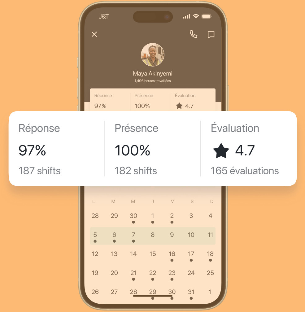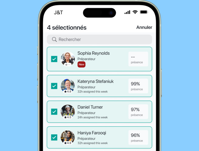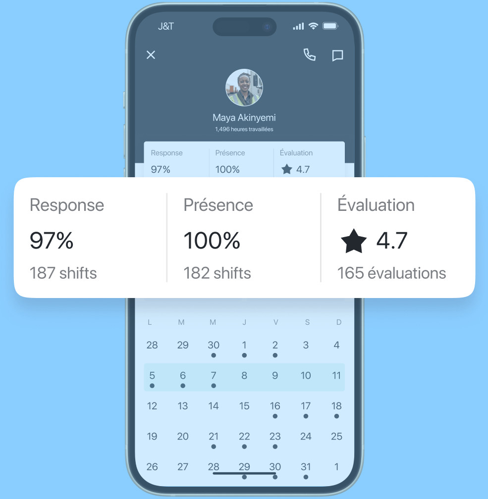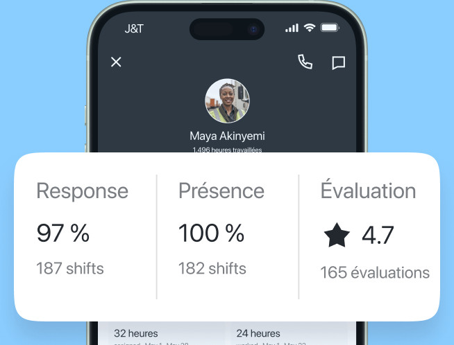 Gérer la présence aux missions et la performance de votre effectif n’a pas à être compliqué. Avec Job&Talent Business, affectez facilement des missions, suivez les confirmations des travailleurs et réduisez l’absentéisme grâce à des commentaires ludiques.